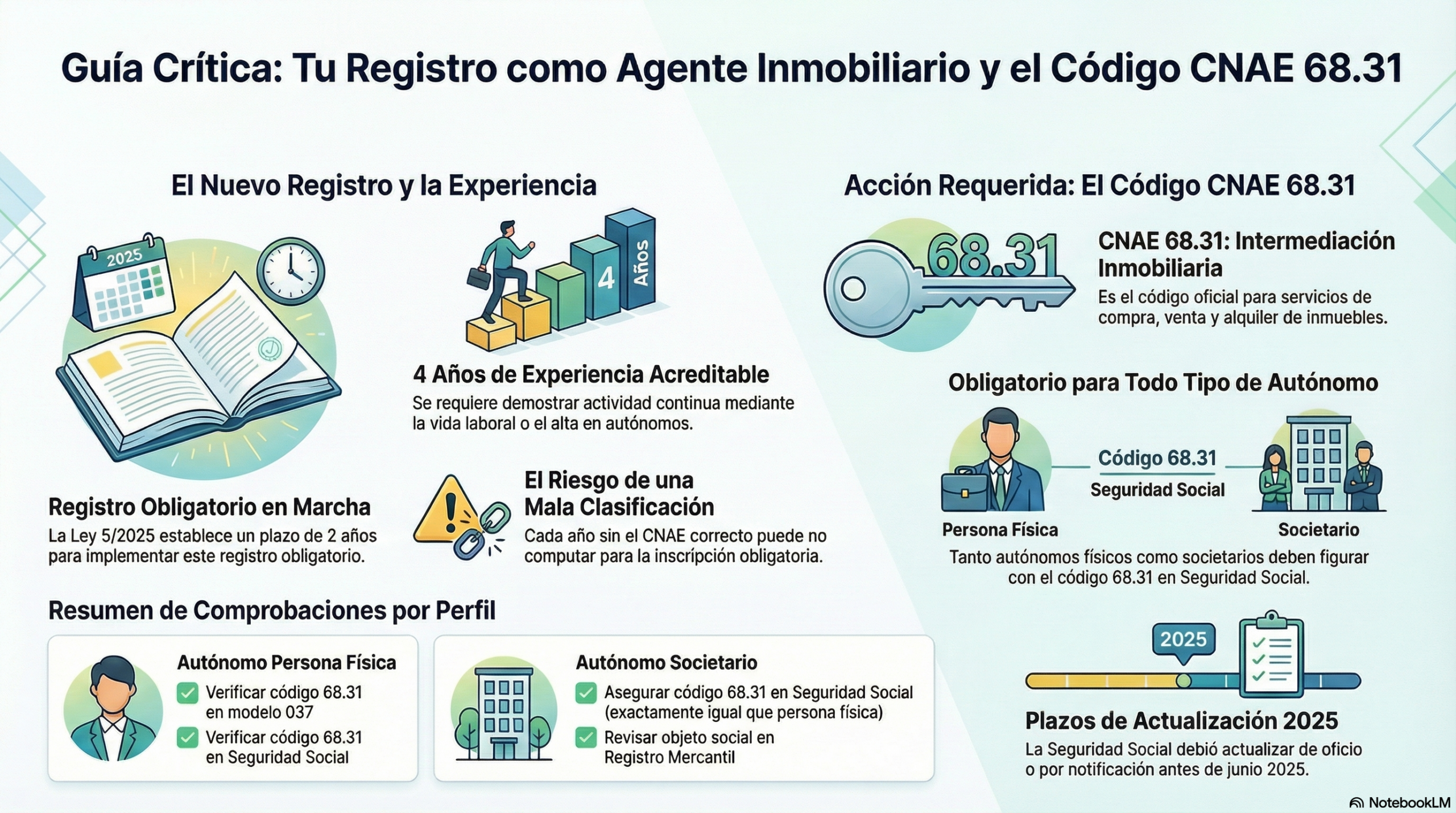 La llave que abre la puerta del "Camino C" es el código CNAE 68.31 (Servicios de intermediación para actividades inmobiliarias), actualizado bajo el Real Decreto 10/2025. Si su historial en la Seguridad Social no refleja este código, sus años de experiencia podrían ser legalmente invisibles para la Junta de Andalucía.